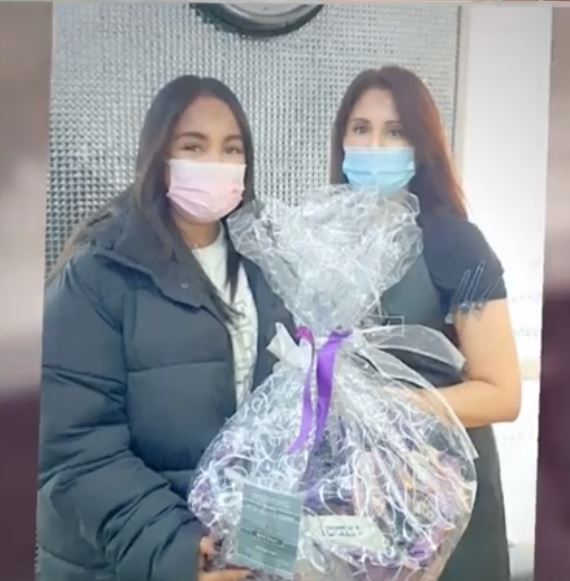 Here is our lucky winner collecting her prize: